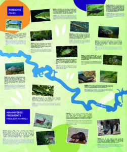 Carpes (communes, miroirs) barbeaux, chevesnes, anguilles d’Europe, brochets sont très nombreux et on les observe d’autant mieux que le niveau d’eau est assez bas. https://fr.wikipedia.org/wiki/Barbeau_commun